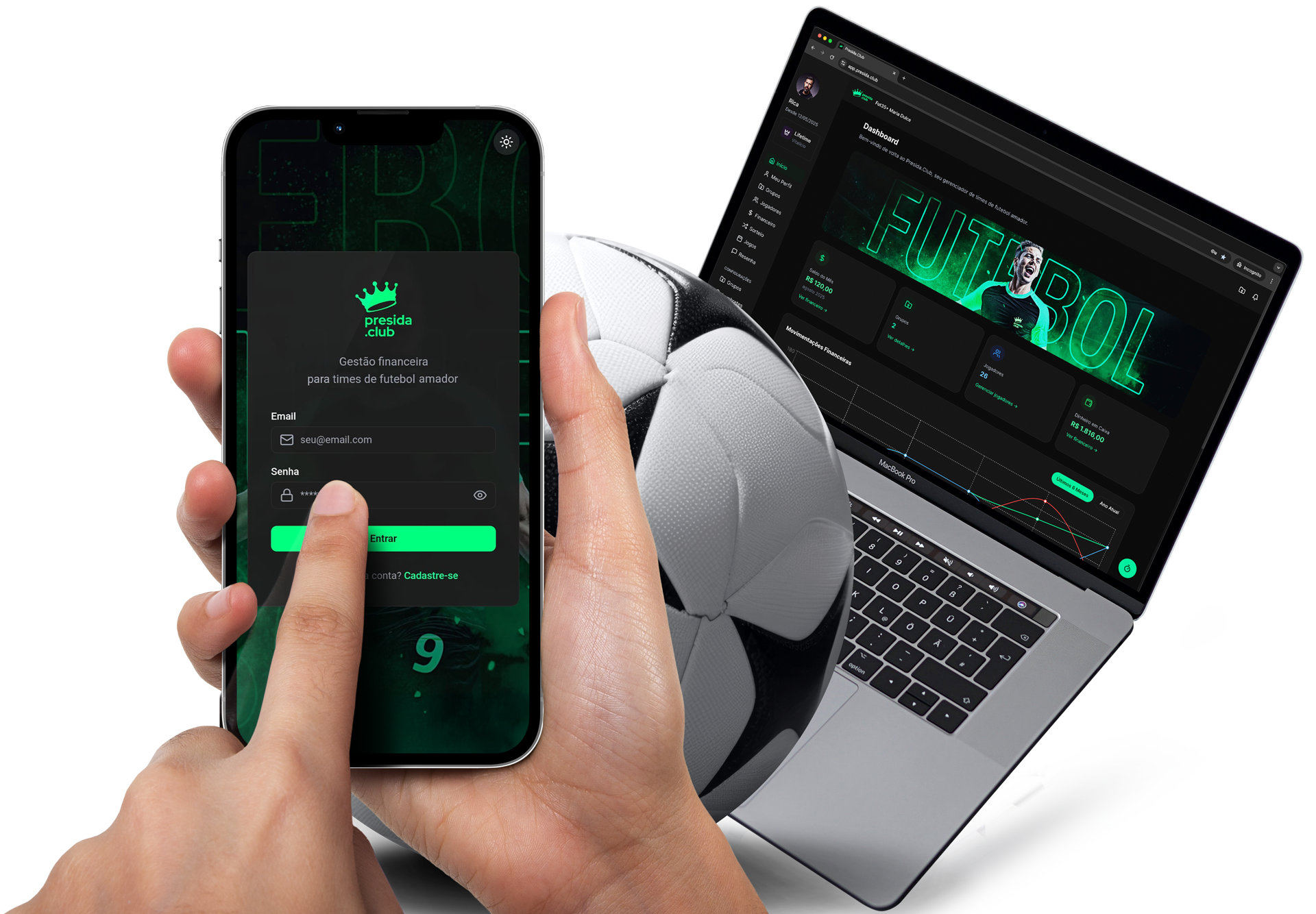 É um aplicativo com a tecnologia PWA que pode ser acessado via navegador e instalado em computador ou celular. A plataforma atende a necessidade completa de gerenciamento de time de futebol amador com suas funcionalidades totalmente integrado.